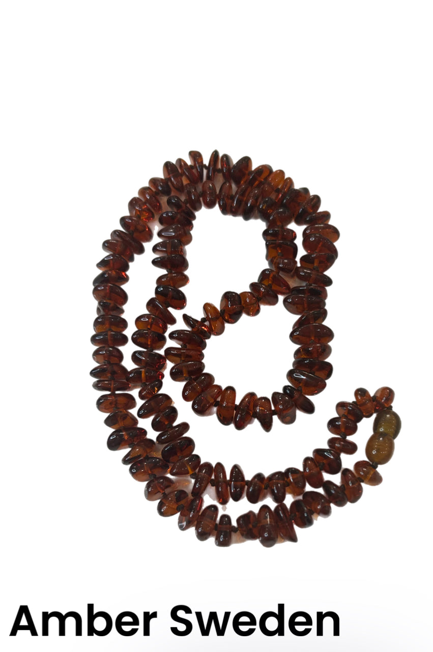Dessa magnifika halsband av bärnsten i rött är 30 cm långa och skapar en elegant touch till din stil. Med sin distinkta färg och kvalitet ger dessa halsband en sofistikerad och vacker detalj till din outfit. Låt dessa röda bärnstenar lysa upp din look och ge en touch av klass och skönhet till varje tillfälle.