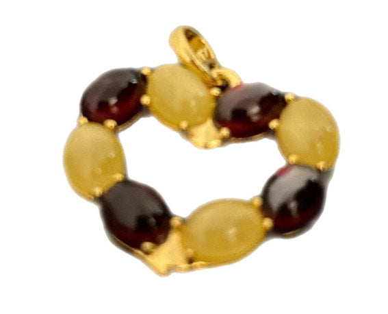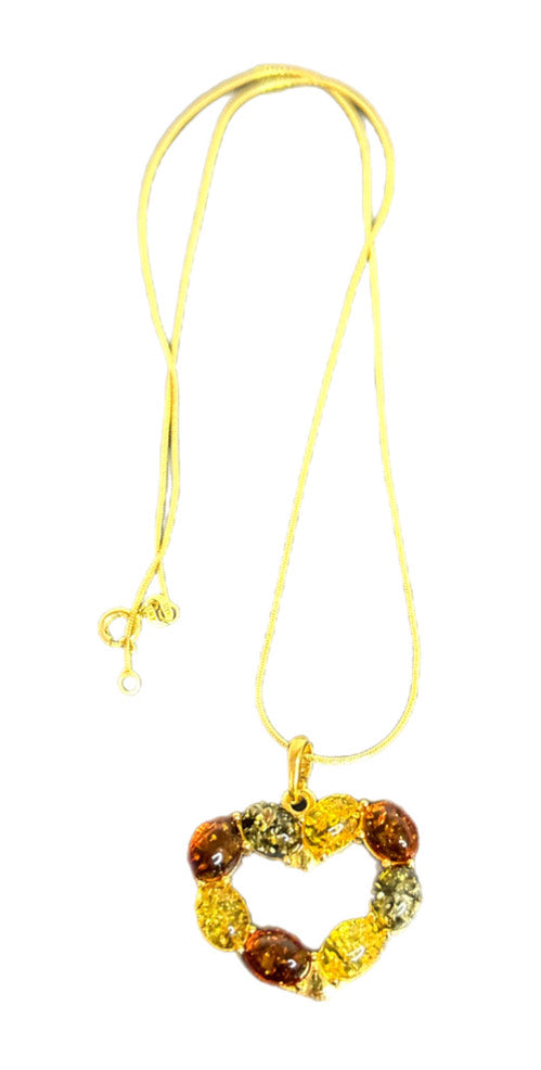 Hängsmycket kombinerar det naturliga och jordnära i bärnstenen med det sofistikerade och stilrena i det guldpläterade silvret. Denna kombination av material skapar en harmonisk balans mellan det moderna och det tidlösa i smyckeskapande. Hjärtformen symboliserar kärlek och ömhet, vilket ger en djupare mening till bärnstenssmycket.